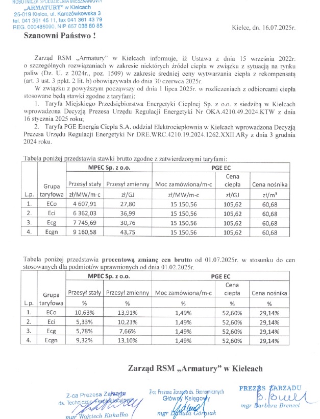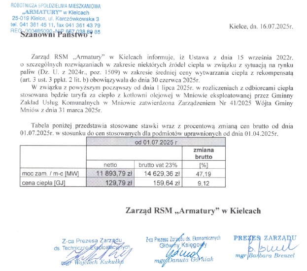 RSM „Armatury” jest jedną z najstarszych w regionie Świętokrzyskim spółdzielnią mieszkaniową założoną w 1959 r., obecnie zarządzającą w Kielcach terenami na Osiedlach: Chęcińskie, Podkarczówka, Jagiellońskie, Herby o ogólnej powierzchni 47,5 ha.